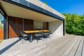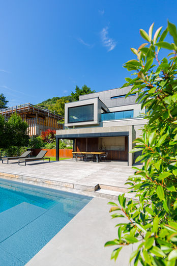 Enfin, un pool house en béton vient parfaire la composition. Pensé comme une extension à part entière, il accueille une cuisine d’été et des sanitaires, offrant un confort d’usage qui permet de vivre chaque moment au bord de l’eau avec simplicité et évidence.