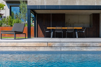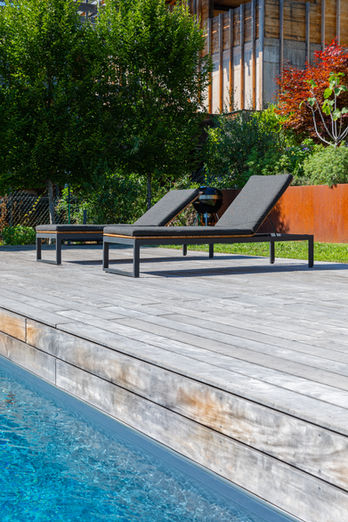 L’ensemble se vit autant qu’il se contemple. Le choix d’un mobilier Gescova, élégant et résistant, accompagne les moments de partage et prolonge naturellement les usages de la terrasse, entre convivialité et instants suspendus.